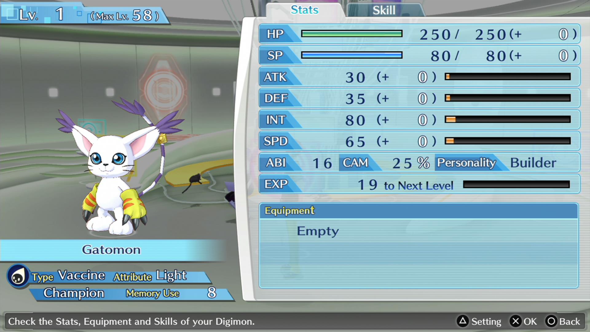 Clásico en este tipo de videojuegos, cada digimon pertenece a una clase que es más fuerte o débil contra otra en específico. Pero además de eso tenemos que echar un ojo a nuestra capacidad máxima de “memoria”, pues no podemos excederla entre los tres integrantes del equipo.
