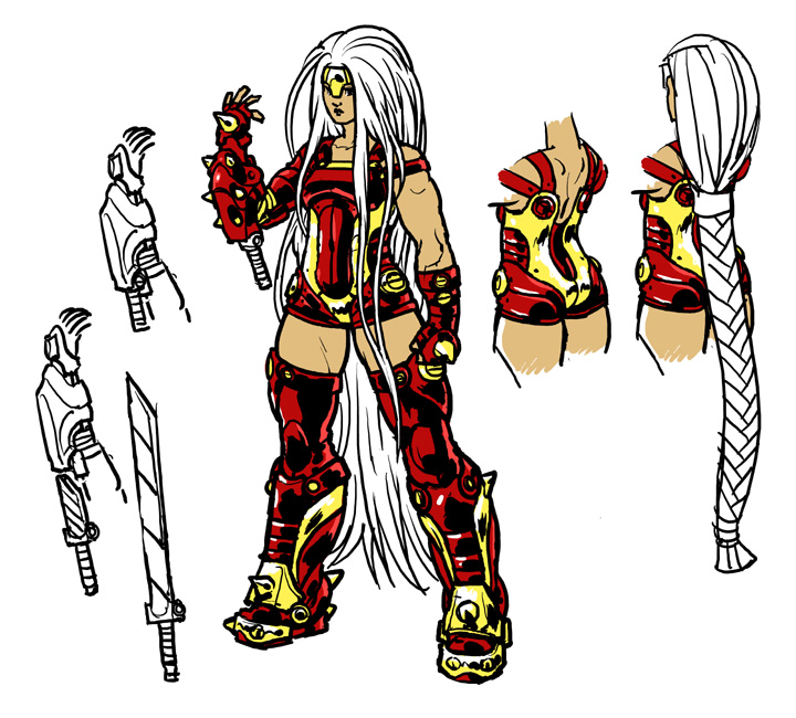 Le decimos adiós al ridículo traje de baño con tanga y las imprácticas bandas en los muslos y los brazos. En su lugar, tenemos ahora algo con líneas claras y diseño impecable, pero con completa funcionalidad. La inclusión de la faja colgante es también un recuerdo de su antiguo look. Nada en los rediseños de Anka parece haberse pasado por encima. Checa este proceso de diseño a través de varios modelos diferentes:
