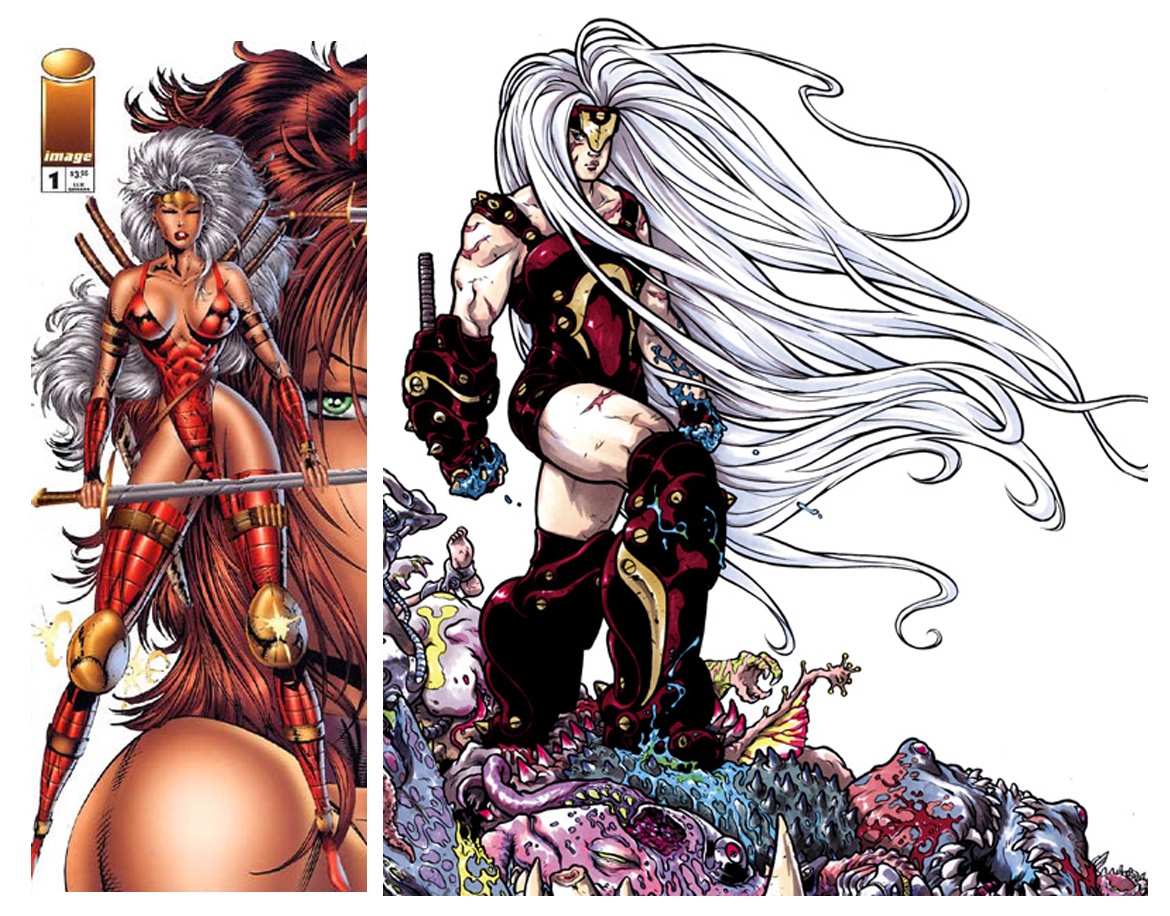 Ese diseño influyó el tono completo del relanzamiento de esta trascendental serie. Con una hermosa y gigantesca armadura y consideraciones más prácticas, al igual que la dosis de músculo necesaria, Glory pasó de ser una broma a lo mejor de lo mejor. Aún así, Campbell mantuvo el cabello imposiblemente largo, y de alguna forma lo hizo funcionar.