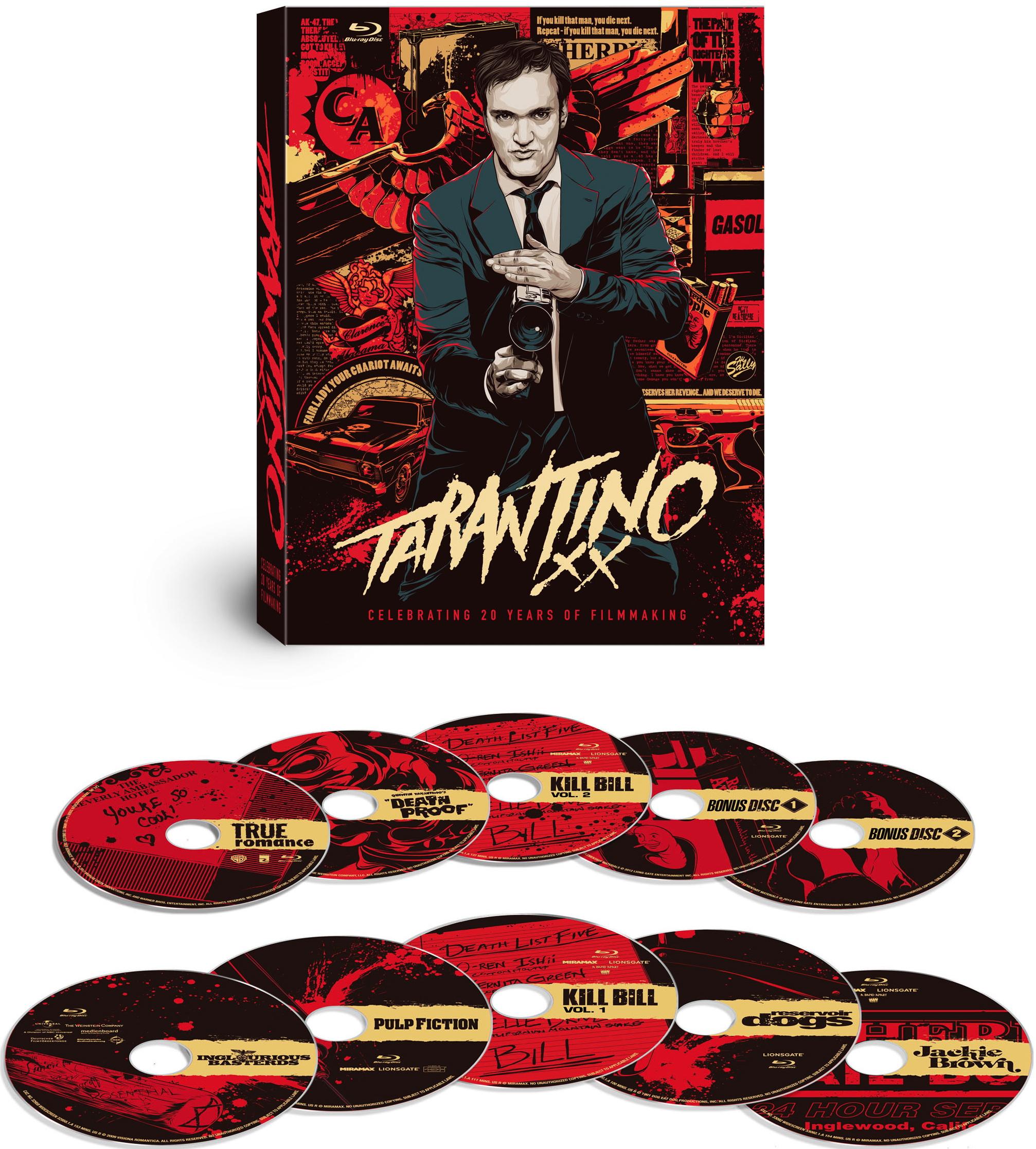 El box set en Blu-ray incluye diez discos con las películas Perros de Reserva (Reservoir Dogs), Tiempos Violentos (Pulp Fiction), Jackie Brown, La Fuga (True Romance), las dos películas de Kill Bill, A Prueba de Muerte (Death Proof) y Bastardos sin Gloria (Inglourious Basterds).