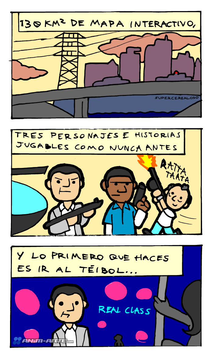 Grand Theft Auto V viene a recuperar la corona de Rockstar como los mejores creadores de mundos abiertos, y es que si en Skyrimpodíamos cabalgar hacia una montaña, en GTA V podremos tomar un jet, viajar hacia otra ciudad y saltar desde el jet para caer en algún lugar de desierto y encontrar algo qué hacer, y si no hallas nada divertido siempre puedes cambiar de personaje y hacer otra cosa completamente a distinta.