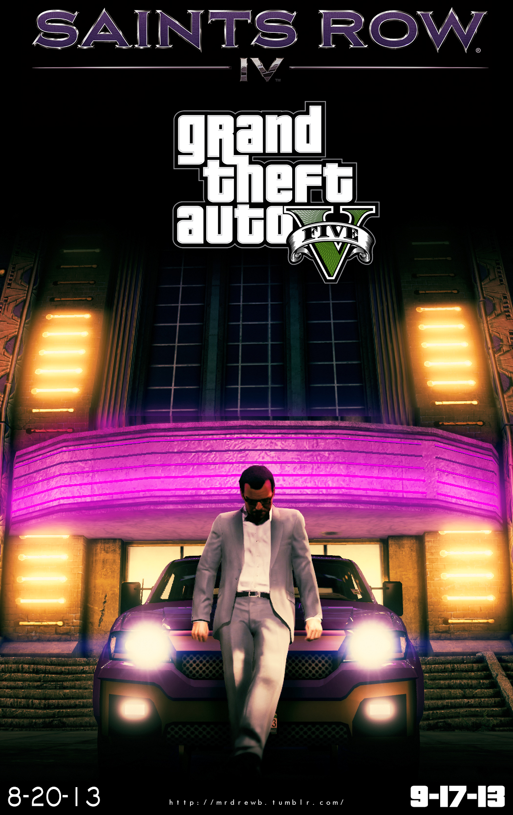 Saints Row IV salió el 20 de Agosto de este año y esta disponible para Xbox 360, PlayStation 3 y PC, mientras que Grand Theft Auto V esta disponible a partir del día de hoy únicamente para Xbox 360 y PlayStation 3.