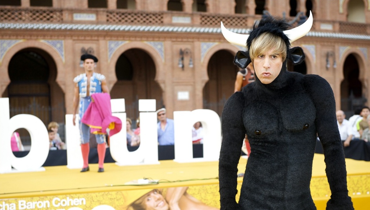 Hijo de un padre inglés y una madre israelí, Sacha Baron Cohen se toma la libertad de hacer humor basado en clichés sobre los judíos, pero también sobre los estadounidenses, los árabes, las mujeres, los latinoamericanos, los negros, los nazis y los homosexuales. Ningún grupo de la sociedad, sea mayoritario o minoritario, queda fuera del alcance del humor ácido y devastador del británico, que continuó su provocación con Brüno, un afeminado periodista austríaco, hueco y xenófobo.