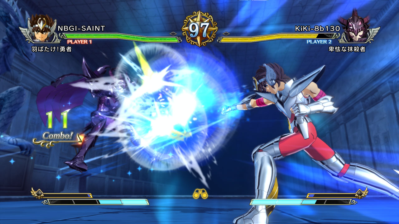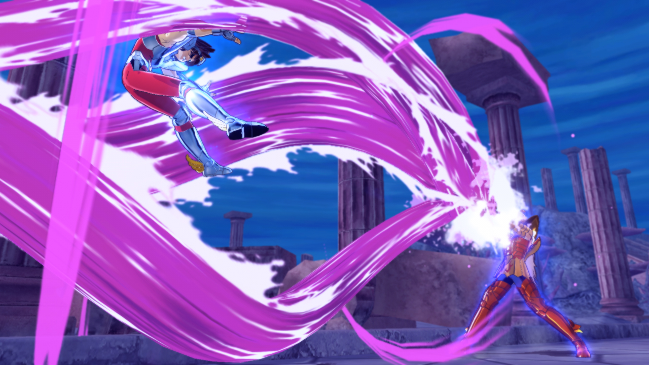 Cada personaje cuenta combinaciones propias basadas en sus ataques en la serie, pero estos palidecen ante los combos especiales que pueden realizar al cargar una sección de su barra de cosmos (la energía que utilizan para realizar ataques especiales) y ahí es donde el sistema de combate empieza a caerse. Sin importar el personaje que escojas, sus movimientos especiales se ejecutan de la misma manera, los efectos son diversos y el daño que provocan es distinto, pero con dominarlos vas a derrotar a todo mundo.