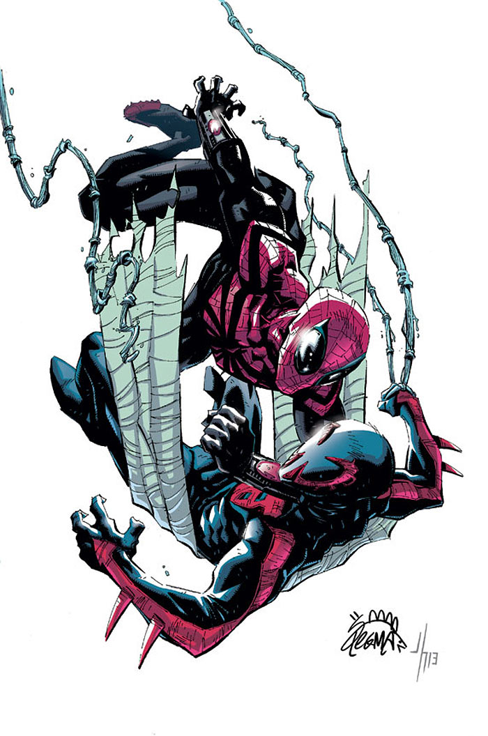 Como puedes ver en la portada de arriba, tal vez la discusión se calienta un poquito. Y no sólo eso, sino que en Superior Spider-Man Team-Up #2, Jackal (el científico mutado creador de Kaine) aparece misteriosamente para intervenir en la confrontación. ¿Irá a ser el clon de Peter Parker (introducido por el mismo Slott durante su corrida) la llave para traer de vuelta a la vida al Spider-Man original?