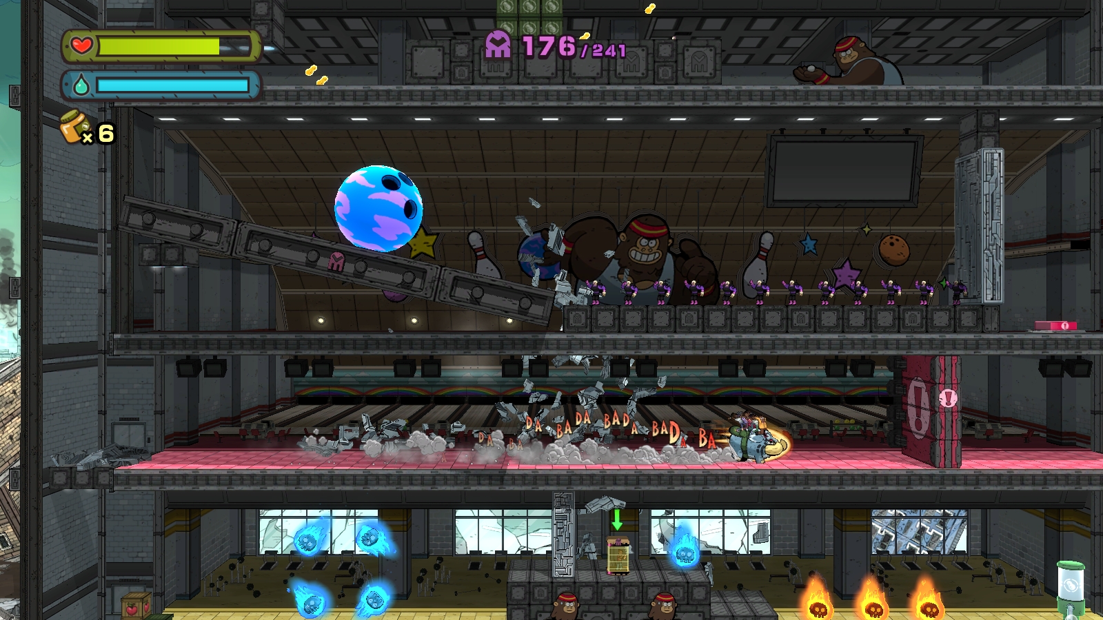 Tembo usa su fuerza para arrasar todo lo que tenga enfrente, y cuando las cosas se pongan difíciles tendrá que emplear su peso (siete toneladas y media) para abrirse camino, emplear diversos objetos en los escenarios o sus inverosímiles habilidades acróbatas para buscar rutas alternativas en las alturas. Bastante cotorro el asunto.