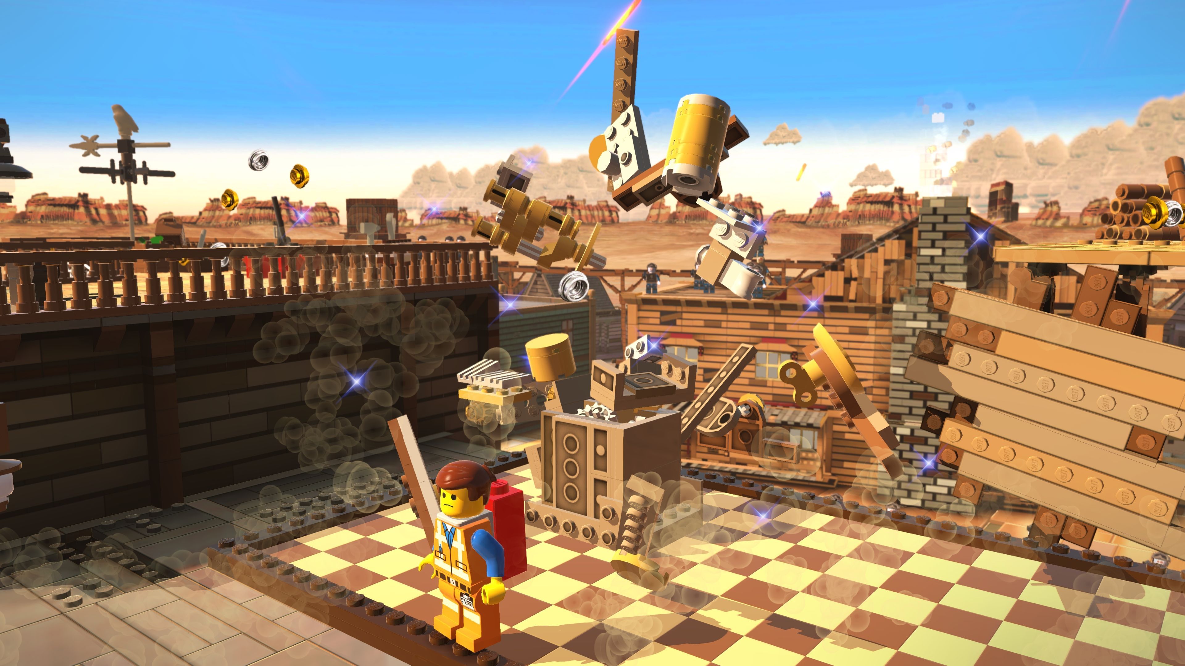 Los escenarios siguen siendo relativamente vastos y con varias zonas por explorar, algunas de ellas accesibles hasta tiempo después, cuando tengamos más personajes y habilidades en The Lego Movie Videogame. Claramente la variedad es lo mejor en este apartado, por un momento podemos estar manejando autos y destruyendo ladrillos en las calles, al otro estar montando caballos en el viejo oeste o encontrarnos en una ciudad llena de colores brillantes sobre las nubes mientras controlamos a Batman, quien no para de quejarse por la falta de tonos oscuros.