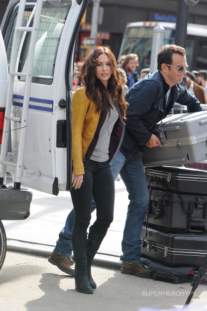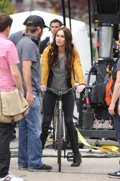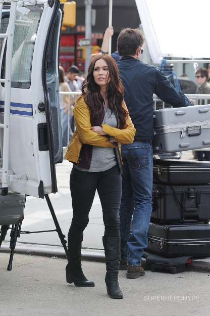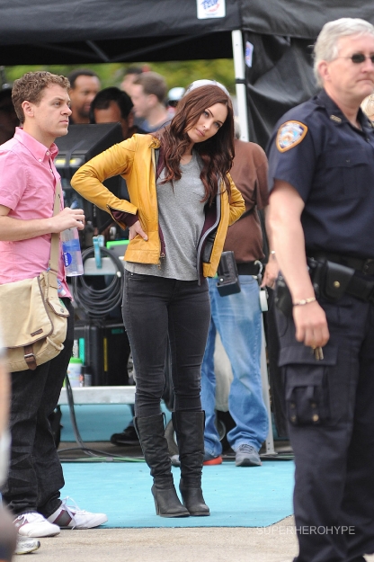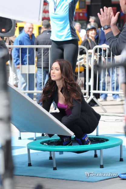 Hoy te mostramos una galería de doce imágenes durante la filmación de Tortugas Ninja en Gramercy Parck, en Manhattan. En ellas aparece la sexy Megan Fox dando vida a la reportera April O’Neil mientras graba un segmento de noticias para Canal 6 sobre una rutina de ejercicios en una pequeña cama elástica.