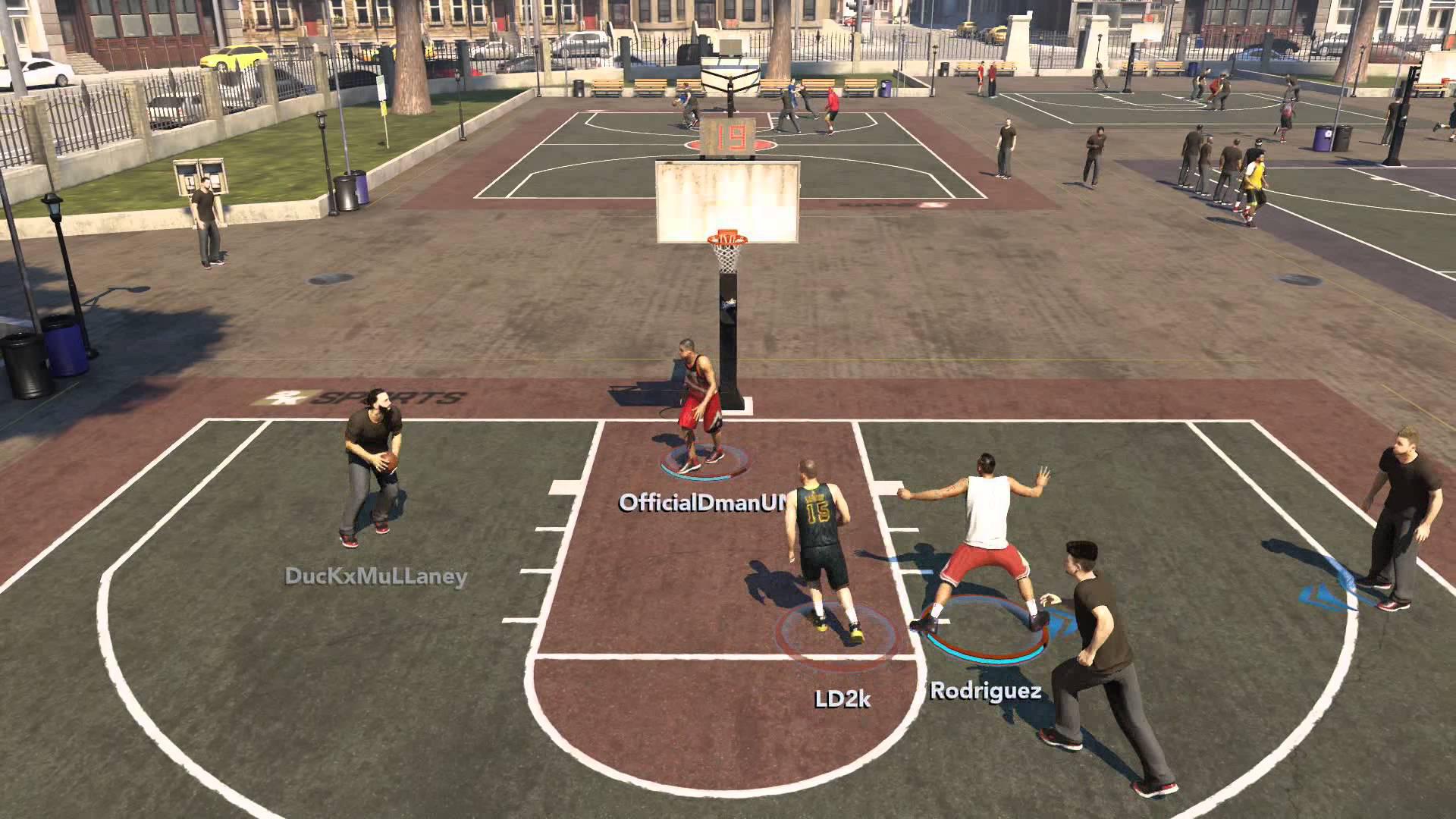 Finalmente, tenemos los modos de juego en línea, en el que podemos competir ya sea en partidos tradicionales cinco contra cinco o en duelos callejeros donde llevamos a nuestra creación del modo de carrera a competir a las canchas de asfalto. En este segundo modo, llamado My Park, escogemos de entre tres fracciones (cada una con ciertos atributos) para después esperar en un lobby a manera de canchas deportivas a que se arme la reta.