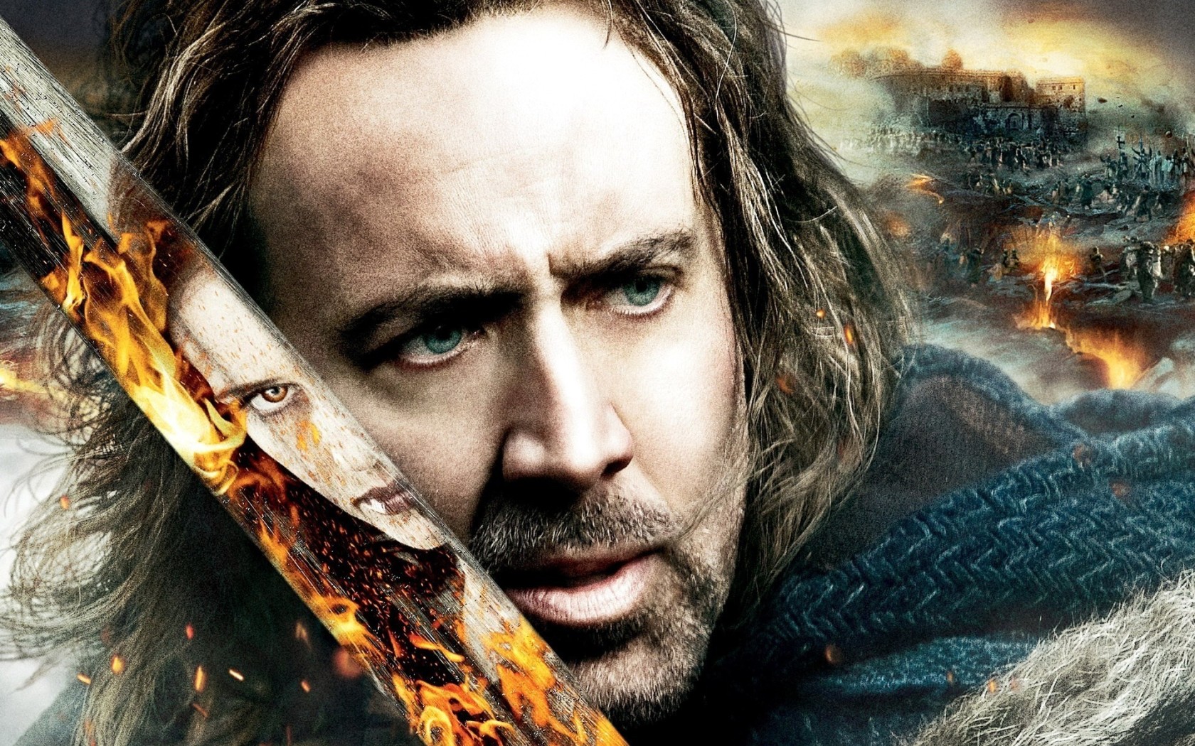 El año es mil 300 y pico. El escenario histórico, las Cruzadas. Es en esta época donde la Iglesia busca acabar con todo aquel que no profese la religión católica y en su campaña no sólo declaró la guerra a otros pueblos y religiones, sino que frecuentemente acusaba de brujería a todo el que los mirara feo… para terminar colgándolos, claro. Nicolas Cage interpreta a Behmen de Bleiruck, un caballero cruzado que junto con su compañero Felson (Ron Perlman) deciden retirarse de las órdenes de la Iglesia después de como diez minutos de película en los que matan según eso a muchos inocentes, muchas mujeres y montones de niños.