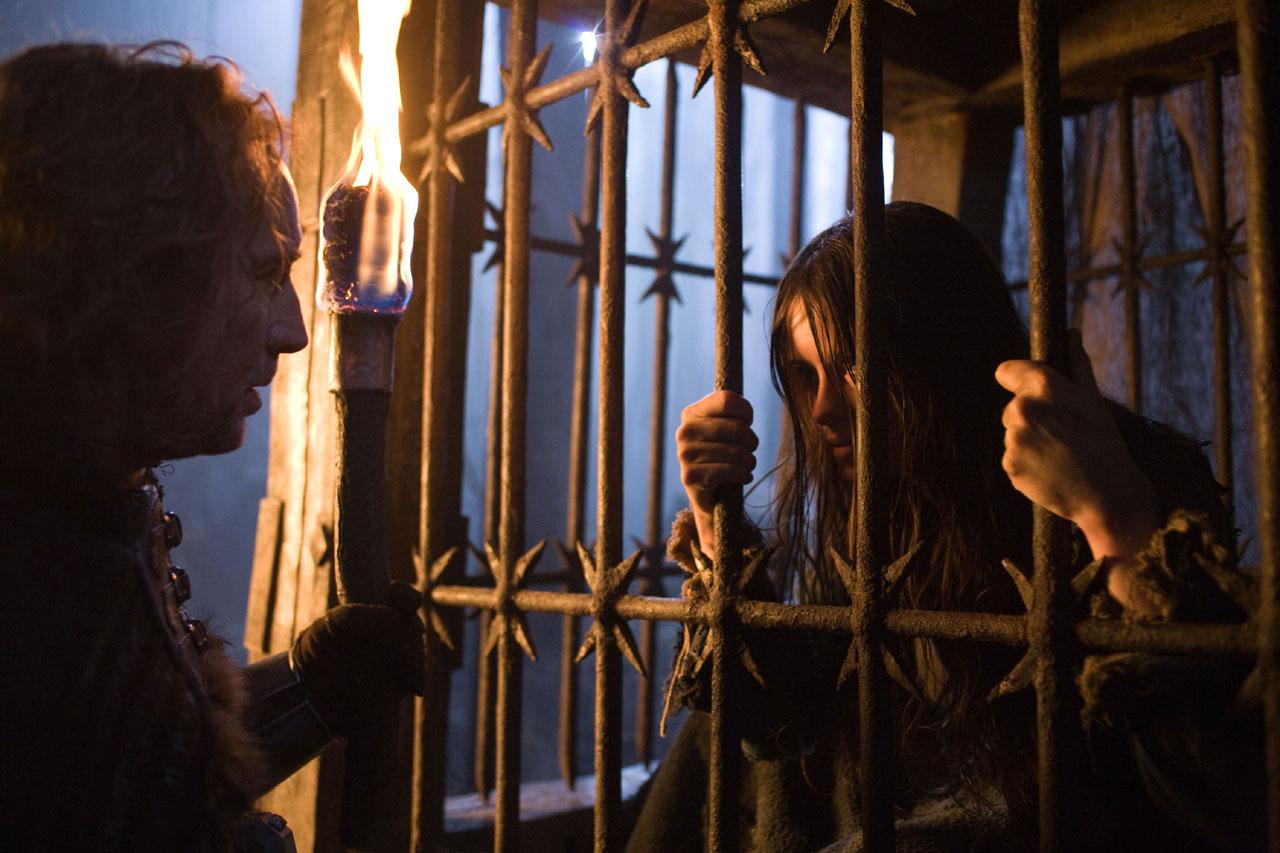 Para el viaje en Temporada de Brujas se unen algunos personajes más, especialmente un monje llamado Debelzaq (Stephen Campbell Moore) quien les advierte de lo peligrosa que es la bruja a pesar de su tierna apariencia de niña bonitay maltratada. Pero para Felson y Behmen la Iglesia culpaba a cualquiera y una cara linda no era la excepción, aunque siempre queda de manifiesto un halo de misterio (y fuerza sobrehumana) respecto a la chica. Total que la trepan a una especie de carreta-jaula y la tropa se dispone a llevarla al monasterio.