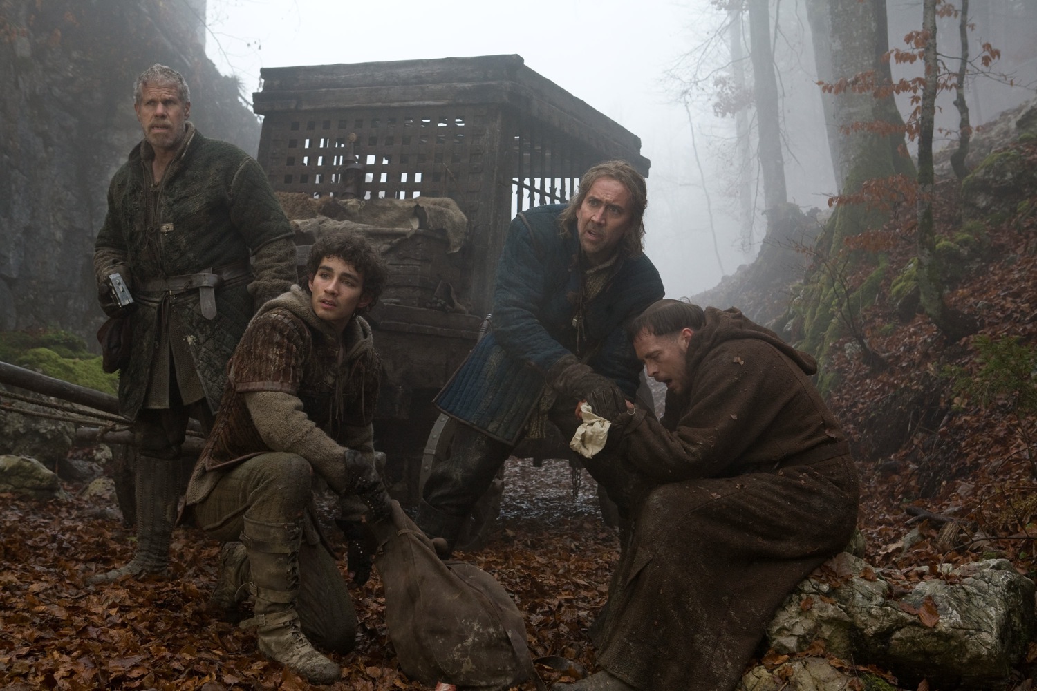El año es mil 300 y pico. El escenario histórico, las Cruzadas. Es en esta época donde la Iglesia busca acabar con todo aquel que no profese la religión católica y en su campaña no sólo declaró la guerra a otros pueblos y religiones, sino que frecuentemente acusaba de brujería a todo el que los mirara feo… para terminar colgándolos, claro. Nicolas Cage interpreta a Behmen de Bleiruck, un caballero cruzado que junto con su compañero Felson (Ron Perlman) deciden retirarse de las órdenes de la Iglesia después de como diez minutos de película en los que matan según eso a muchos inocentes, muchas mujeres y montones de niños.