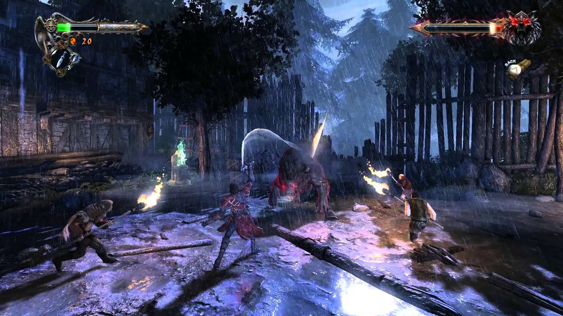El protagonista sobre quien tomamos control, Gabriel Belmont, llega a uno de los desafortunados pueblos infestados de licántropos (hombres lobo). Armado con su Cruz de Combate logra hacerles frente y se presenta como un guerrero enviado por la Hermandad de la Luz para intentar poner fin a la época de oscuridad.