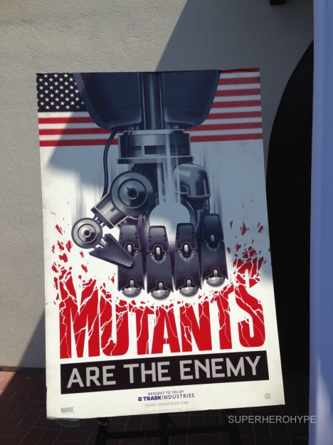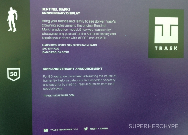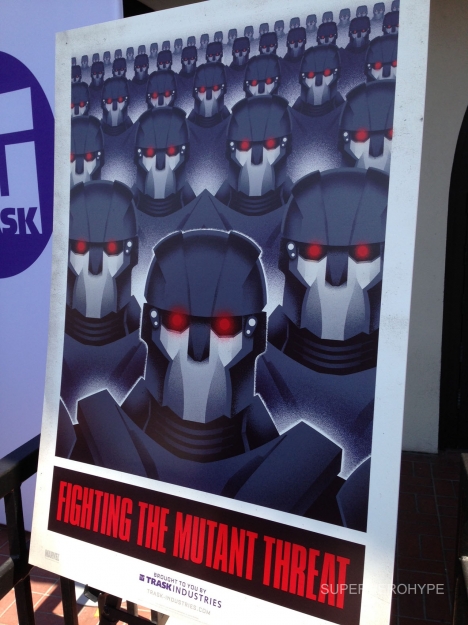 Además de las cabezas de dichos robots (una de ellas con los ojos encendidos, seguramente buscando mutantes entre los asistentes), Industrias Trask también mostró carteles de propaganda y folletos con información sobre los Centinelas.